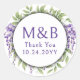 Monogramme simple Merci Élégant Stickers Mariage violet Étiquettes présente votre monogramme personnalisé dans la typographie de script de calligraphie violet moderne entourée d'élégantes fleurs de glycine. Parfait pour les mariages, fêtes de fiançailles, anniversaires, anniversaires, événements et célébrations, Quinceanera, baby shower, douches nuptiales et plus encore. Conçu par Evco Studio www.zazzle.com/store/evcostudio