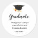 Simple script Merci graduation fête Classic Round Sticker, montrez votre appréciation pour votre invité avec ce simple remerciement autocollant graduation