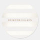 Sticker Rond Simple stylé FAUX Silver and White Stripes 2