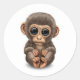 Sticker Rond Singe Bébé mignon et curieux en blanc