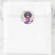 Sticker Rond Sirène à peau foncée avec une queue rose
