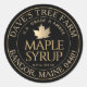 Sticker Rond Sirop d'érable en noir avec feuille d'érable d'or