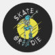 Sticker Rond Skate ou die Skeleton Skateboarder