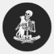 Sticker Rond Skeleton Holding Cat Funny Soky Halloween Meow Kit