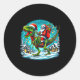 Sticker Rond Skeleton Santa Riding T Rex Dinosaur Funny Christm