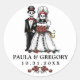 Mariage rouge noir et blanc Skeletons Bride Groom Étiquette rond Art & Design par Julie Alvarez
