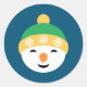 Sticker Rond Snowman de Noël en Casquette vert sur bleu