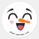 Sticker Rond Snowman Joyeux Noël mignon visage souriant hiver