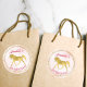 Pink et or cheval fête d'anniversaire personnalisées autocollants avec cheval doré, cercle or, arrière - plan rose.