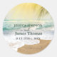 Sticker Rond Soleil Élégant et Plage d'Océan Bleu