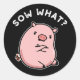 Sticker Rond Sow What Funny Sassy Pig Pun Dark BG