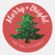 Sparkly Merry Christmas tree green red Sticker. Custom Gift Wrapping Supplies with sparkly Christmas tree and typography Merry + Bright. Photo of sparkles, not actual glitter.