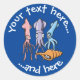 Trois caricatures de calmar mignon et une coquille de mer de triton. Couleur arrière - plan personnalisée. Deux champs de texte sur cercle.