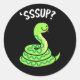Sticker Rond Sssup Funny Hisser Snake Pun Dark BG