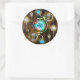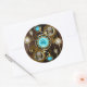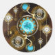 Turquoise lenses with antique watch with brass gears and golden keys on rusty, brown background. Steampunk style.