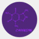Caféine - autocollant violet foncé avec lettrage violet clair et modèle moléculaire.