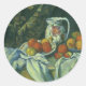 Sticker Rond Still Life, Curtain and Pitcher par Paul Cezanne