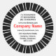 Un modèle autocollant avec un beau entourage de rayons de soleil noir et blanc. Cette version est conçue avec des champs pour un nom d'entreprise et les coordonnées. Bien que le texte soit assez petit sur l'autocollant de 1,5 po, il devrait être parfaitement lisible.