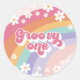 Autocollants super One Retro Rainbow 1er anniversaire avec marguerites.