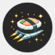Sticker Rond Sushi Spacship Pixel Art Flying Sushi Roll Design