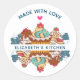 Fabriqué avec des autocollants de cuisine d'amour avec une rangée de succulents cupcakes à l'air avec tourbillons et cerises et le givrage délicieux. Illustré dans un style rétro classique. Les couleurs sont vert rétro, rouge, bleu et crème.