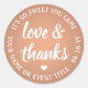 Ajoutez une touche personnalisée aux faveurs de la fête et des notes de remerciement avec des autocollants ronds personnalisés "amour et merci" / scellés d'enveloppe. Tout libellé sur ce modèle est simple à customiser pour toute occasion, comme mariage, douche nuptiale, remise des diplômes, fête d'anniversaire, anniversaire ou retraite. La conception en faux film de cuivre comprend la calligraphie de script moderne au centre et le nom de l'événement de typographie stylisée et la date dans un cercle. Veuillez noter que le cuivre est imprimé en couleur et non en métal. En option, changez le texte courbe en nom et adresse pour créer des étiquettes d'adresse de retour arrondies. Ces élégants étiquettes apportent une touche customisée unique à une célébration spéciale.