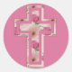 Sticker Rond Symbole croix chrétienne des fleurs roses