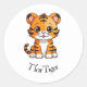 Autocollant adorable avec un joli tigre de dessin animé et les mots "T for Tiger". Outil d'apprentissage par lettre génial pour les apprentissages précoces. Amusant pour collectionneurs et passionnés d'animaux. Trouvez votre lettre préférée dans notre collection "Stickers Alphabet" avec de mignons bébés animaux du monde entier.