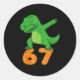 Sticker Rond T-rex Dinosaur Dabbing 67 Meme Six Seven Funny
