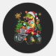Sticker Rond T-rex Santa In Monster Truck With Christmas Trees