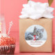 stickers de Noël conçus avec une jolie photo de Noël d'un chat tabby gris mordant joyeusement un chapeau santa rouge. Ses gros pattes moelleuses rendent cette photo très agréable.