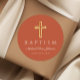 Sticker rond classique en terracotta moderne personnalisée Cross Baptism religieux.