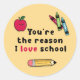 Sticker Rond T'es la raison pour laquelle j'aime l'école Remerc