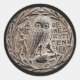 Amphora avec hibou cerclé par une couronne de feuilles d'oliviers.