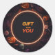 Ajoutez une touche éffrayante à vos cadeaux d'Halloween avec cet autocollant rond classique "Cadeau pour vous". Doté d'un lettrage audacieux et d'éléments d'Halloween étranges comme des chauves-souris, des citrouilles et des toiles, cet autocollant est parfait pour sceller les faveurs des fêtes, les sacs de ruse ou de traitement ou les boîtes cadeaux éffrayantes. Faites de votre Halloween des friandises extra spéciales avec ce design festif et amusant!