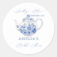 Autocollants de fête de mariage élégants, tendance, vintage avec motif toile de Jouy sur le thème "quelque chose de bleu avant de me marier"