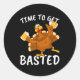 Sticker Rond Time To Get Basted Funny Beer Thanksgiving Turkey