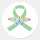 Belle conception pour ajouter une touche agréable à votre envoi ou emballage pour le receveur de greffe ou le donneur d'organe. Ou utilisez n'importe quel autocollant. Design unique avec ruban vert greffé et magnifique papillon symbolisant la nouvelle vie. Utilisez l'option de modification si vous devez redimensionner pour une autre forme d'autocollant.