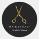 Sticker Rond Trendy Personnalisé Ciseaux d'Or Coiffeur Salon no