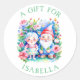 Des étiquettes cadeaux personnalisées avec un mignon gnomes de M. et Mme Clause entouré de fleurs.