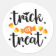 Sticker Rond Tricoter ou traiter Halloween Candy Typographie