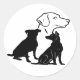 Cette conception comporte trois silhouettes de chien distinctes, le tout dans un agencement cohérent. Le chien de l'arrière - plan est dessiné dans un style simple et lisse, avec sa tête légèrement surélevée, donnant un look calme et composé. Les deux chiens au premier plan sont remplis de noir solide, assis attentivement. Le chien à gauche est assis dans une posture détendue, tandis que celui à droite apparaît plus alerte, en levant avec une expression curieuse. Les différentes positions et les différents styles créent une composition dynamique qui met en évidence différentes races de chiens et des tempéraments. Cette conception saisit l'essence de la compagnie, de la loyauté et de la diversité des chiens.