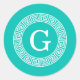 Sticker Rond Turquoise Blanc Clé grecque Cadre Ronde Monogramme