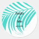 Sticker Rond Turquoise Blue Tropical Palm Tree Leaf Mariage nau