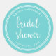 Autocollant élégant et rond pour enterrement de vie de jeune fille sur le thème nautique avec une bordure à rayures blanches et les mots "bridal shower" dans une écriture manuscrite tendance sur fond turquoise. Utilisez-le pour sceller vos enveloppes. Découvrez d'autres articles de mariage ici https://www.zazzle.com/rosewoodandcitrus/gifts?cg=196540141241316965&rf=238364477188679314
