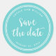 Sticker Rond Turquoise Script et Rayures Blanches Sauvegarder l