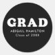 Autocollants de graduation personnalisés avec "Grad" en caractères gras blancs rétro avec un arrière - plan noir (couleur modifiable). Personnalisez les autocollants de graduation noir et blanc en ajoutant le nom et l'année de graduation du diplômé. Les autocollants de graduation personnalisés sont parfaits pour sceller les enveloppes, les sacs de finition, etc.