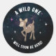 Sticker Rond Un Baby shower de fille rose sauvage de cerf cosmi