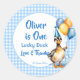 Sticker Rond Un canard chanceux bleu en vichy anniversaire