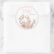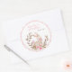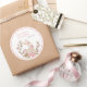 Un lapin tourne un Anniversaire merci 3"autocollants ronds. Jolie typographie en rose pastel avec fontes marron doré. Adorable lapin d'aquarelle entouré de fleurs sauvages rose et marron. Avec des détails pastel en vichy rose. Personnalisez facilement vos bonbons spéciaux 1st Birthday girl party pour les autocollants.